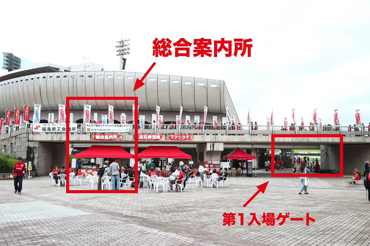 総合案内所で入場手続き開始 ※QRチケットは、総合案内所で入場履歴をつけます ※来場ポイントは、総合案内所で付与いたします ※マッチデープログラムや来場者プレゼント等は、総合案内所にて配布いたします。 |