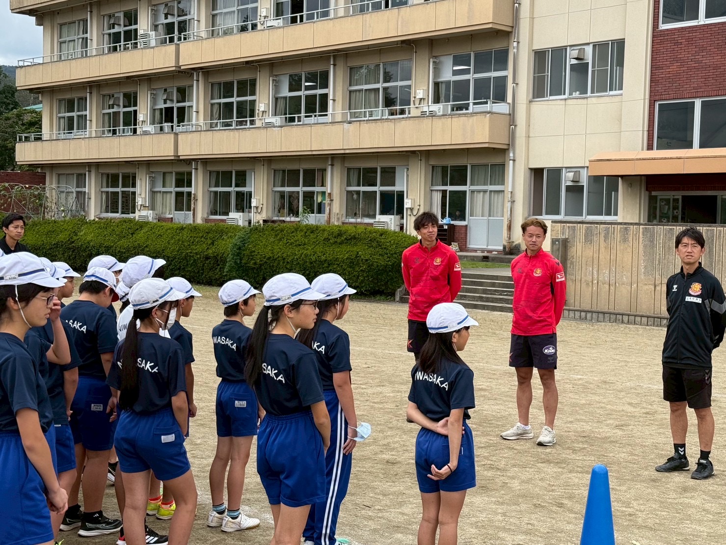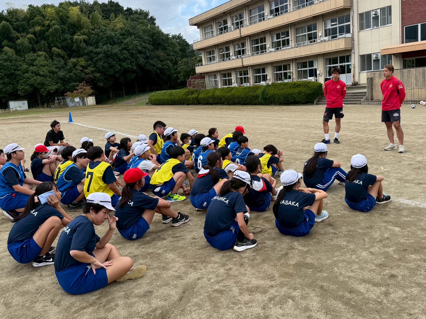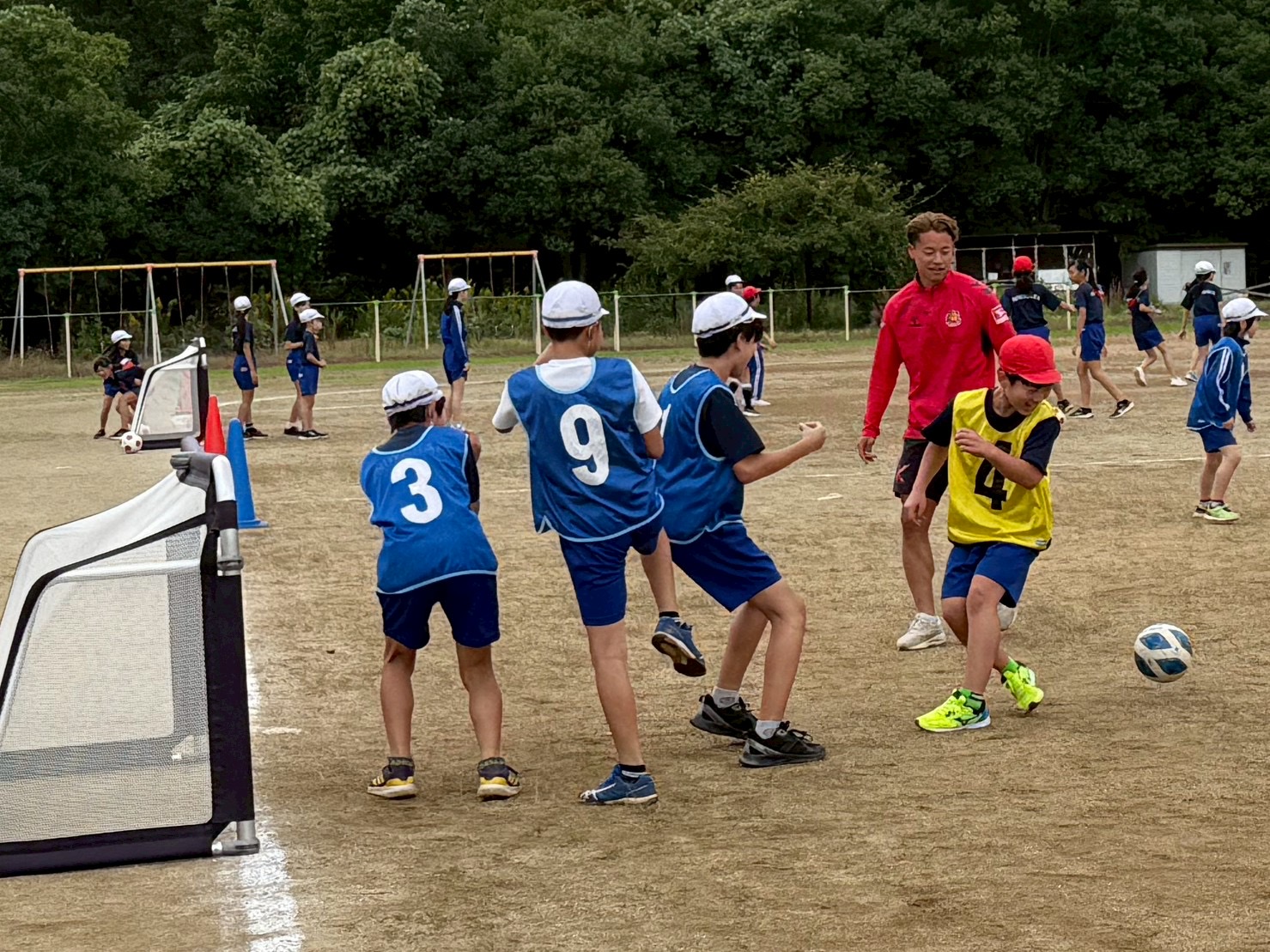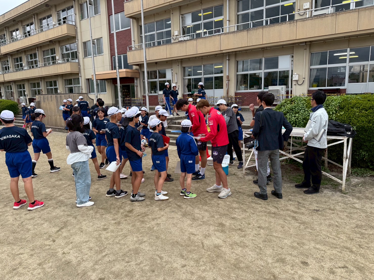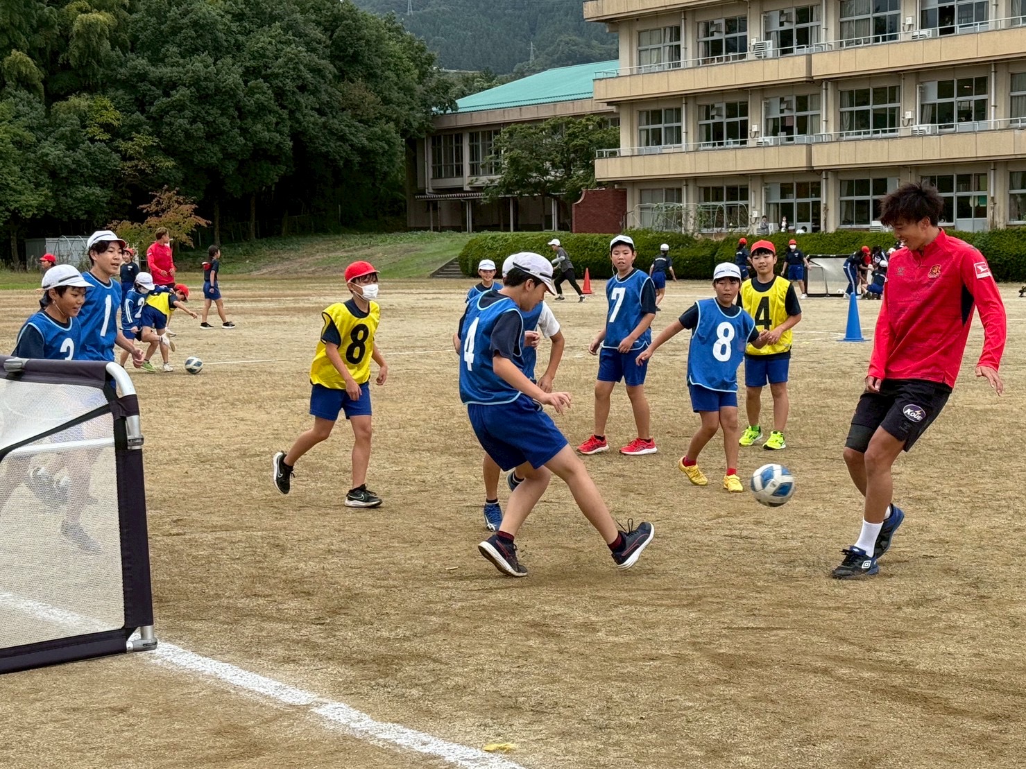 今回は當麻 颯 、野末 学の2選手が講師を務め、44名の子どもたちにサッカーの授業を実施しました。同教室終了後に両選手から「夢を持つ大切さ」を話し、子どもたちからの質問に対し丁寧に回答いたしました。