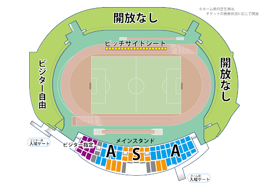 ビジターチームを着席して応援する方々向けに「ビジター指定席」を新設いたします。これに伴い、ビジター自由席の位置が変更となります。