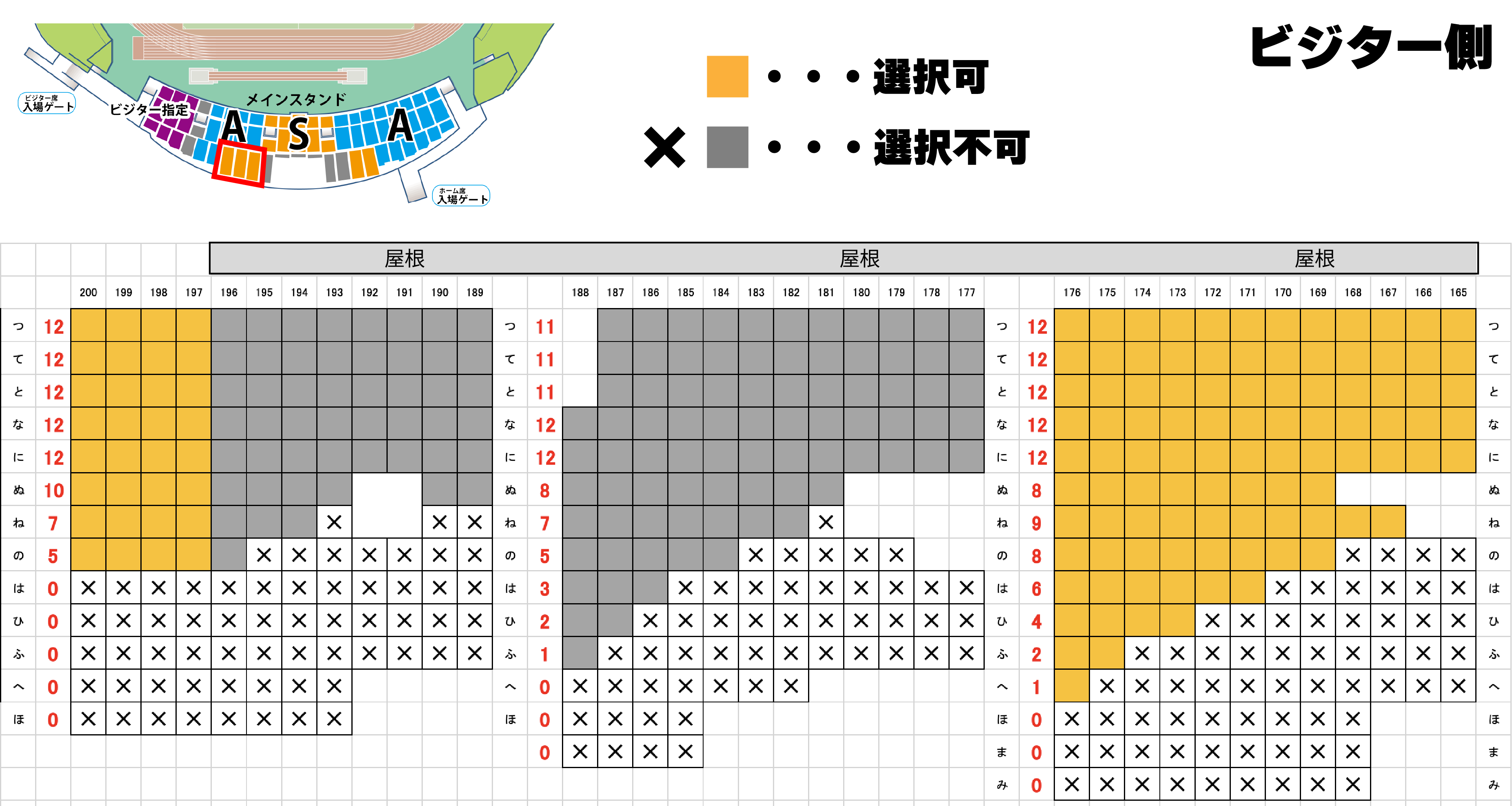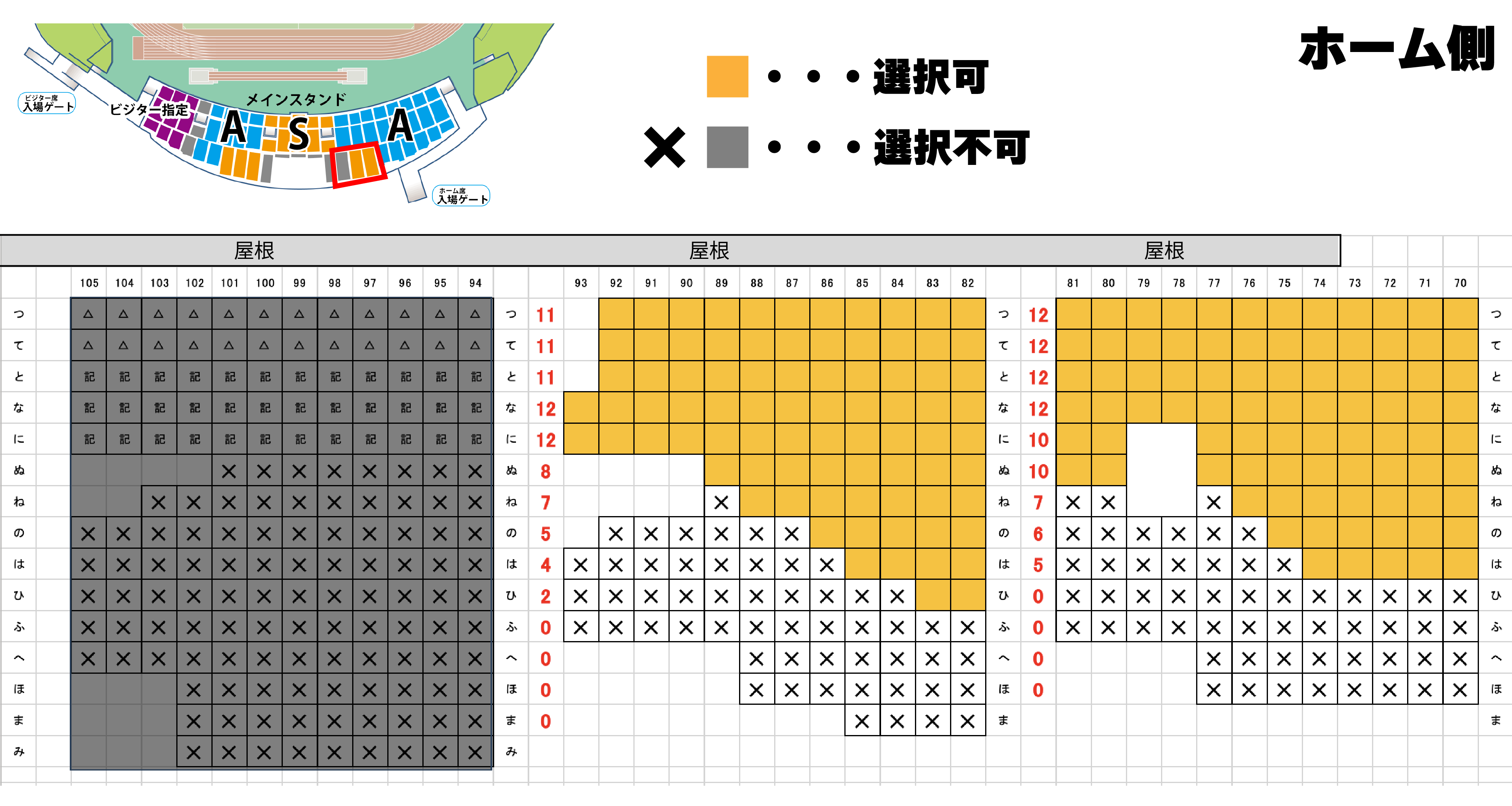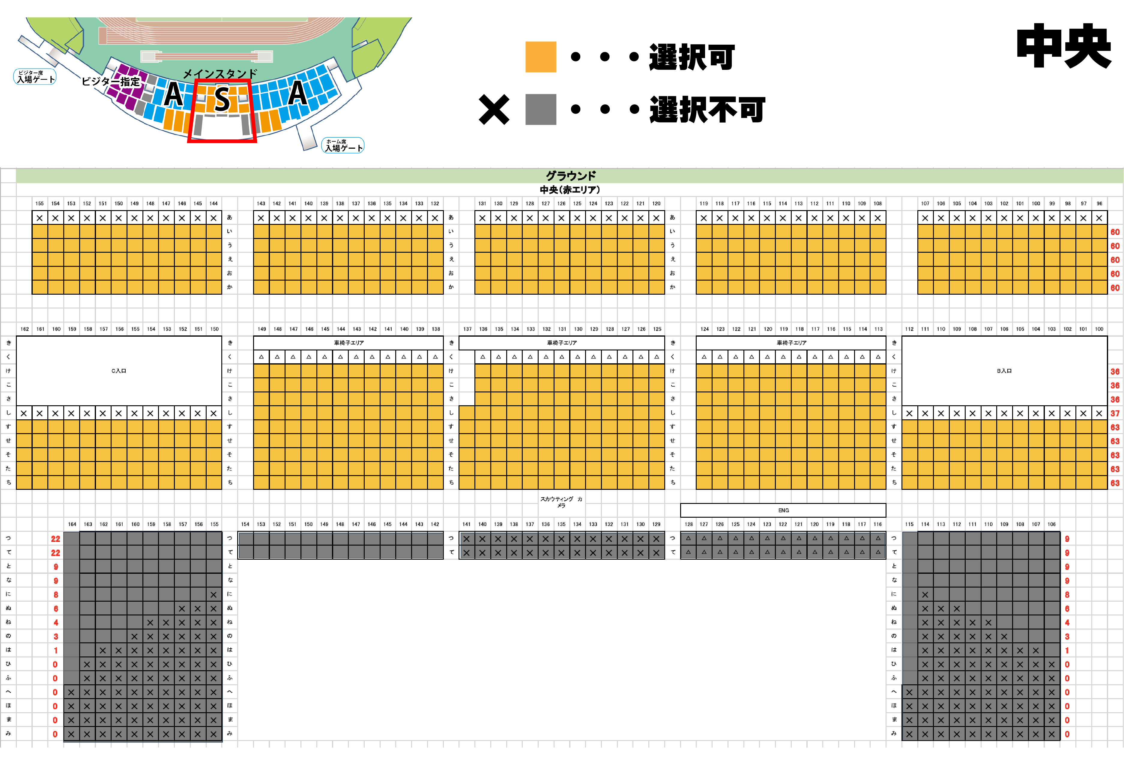お申し込み時にメインスタンドS席でのご希望の座席をお選びください。