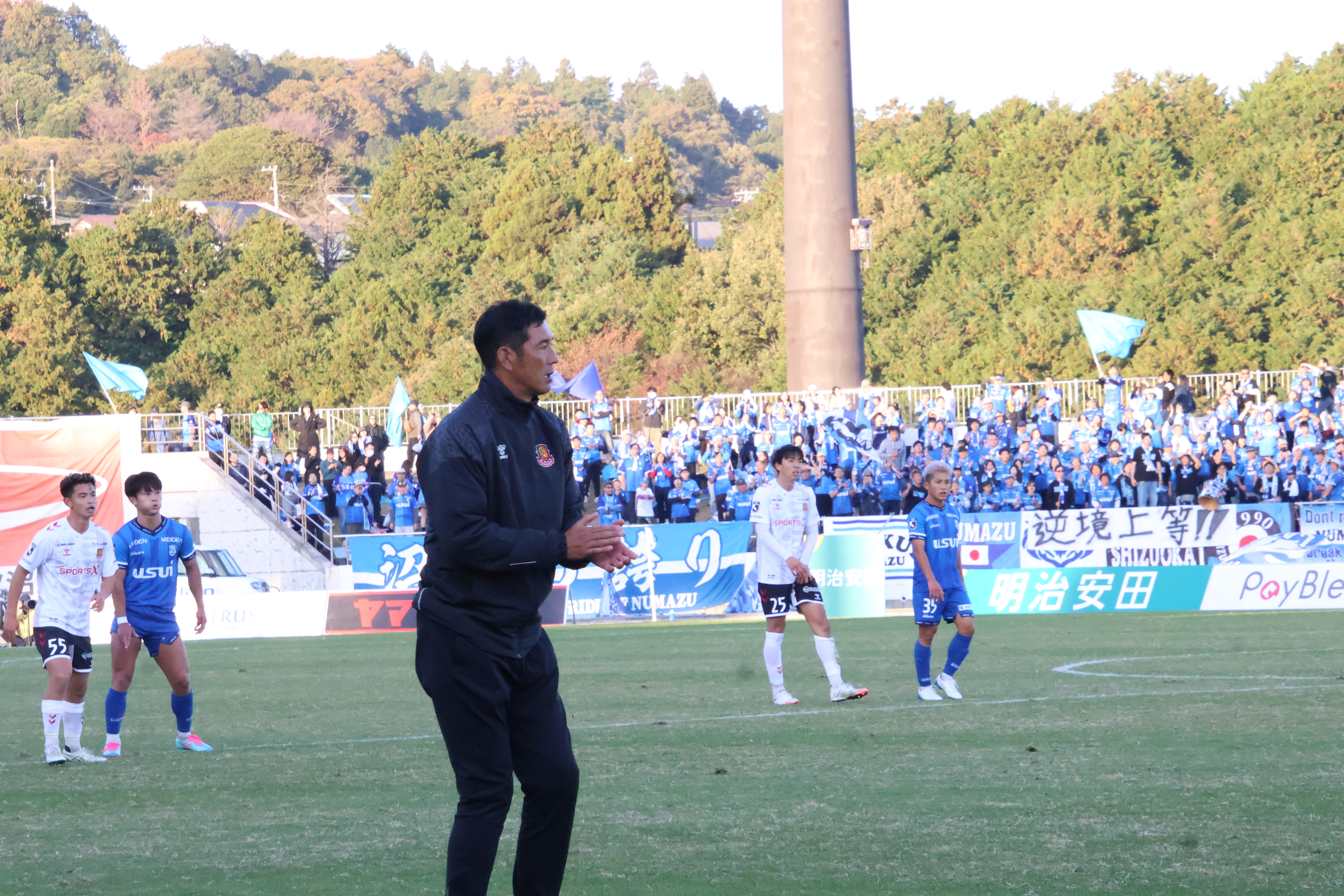 沼津まで足を運んでくださり、また配信を視聴していただいたファン、サポーターのみなさま、応援いただきありがとうございました。可能性がある限り、歯を食いしばって、アディショナルタイムまで死ぬ気で、ぶっ倒れるまで戦い抜き、プレーオフ進出を目指してがんばりますので、最終節はスタジアムまで足を運び、最後まで声援を送ってください。