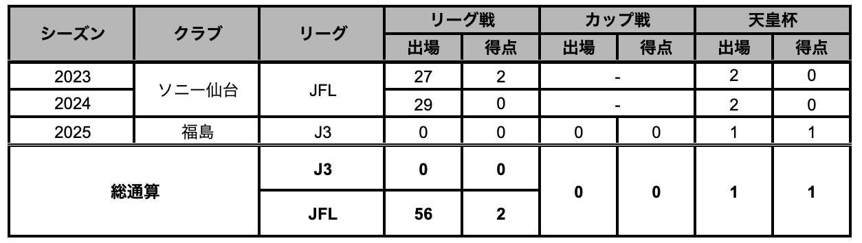 【サッカー歴】ヴェルフェたかはら那須→栃木SC Jr.ユース→矢板中央高校→順天堂大→ソニー仙台→福島ユナイテッドFC
