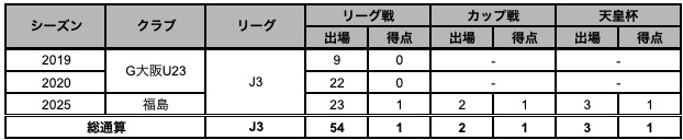 【サッカー歴】スポーツネットサッカークラブ→ガンバ大阪ジュニアユース→ガンバ大阪ユース→甲南大→福島ユナイテッドFC