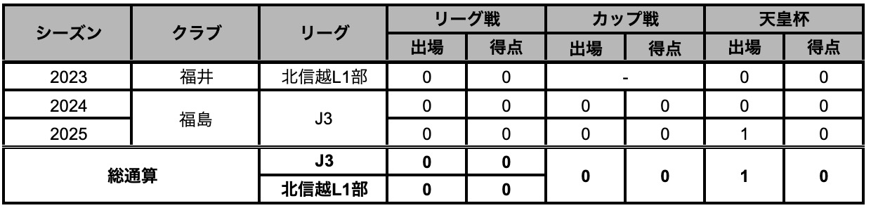 【サッカー歴】会津サントス FC→⽮板中央⾼校→平成国際⼤学→福島ユナイテッド FC→福井ユナイテッド FC→福島ユナイテッド FC