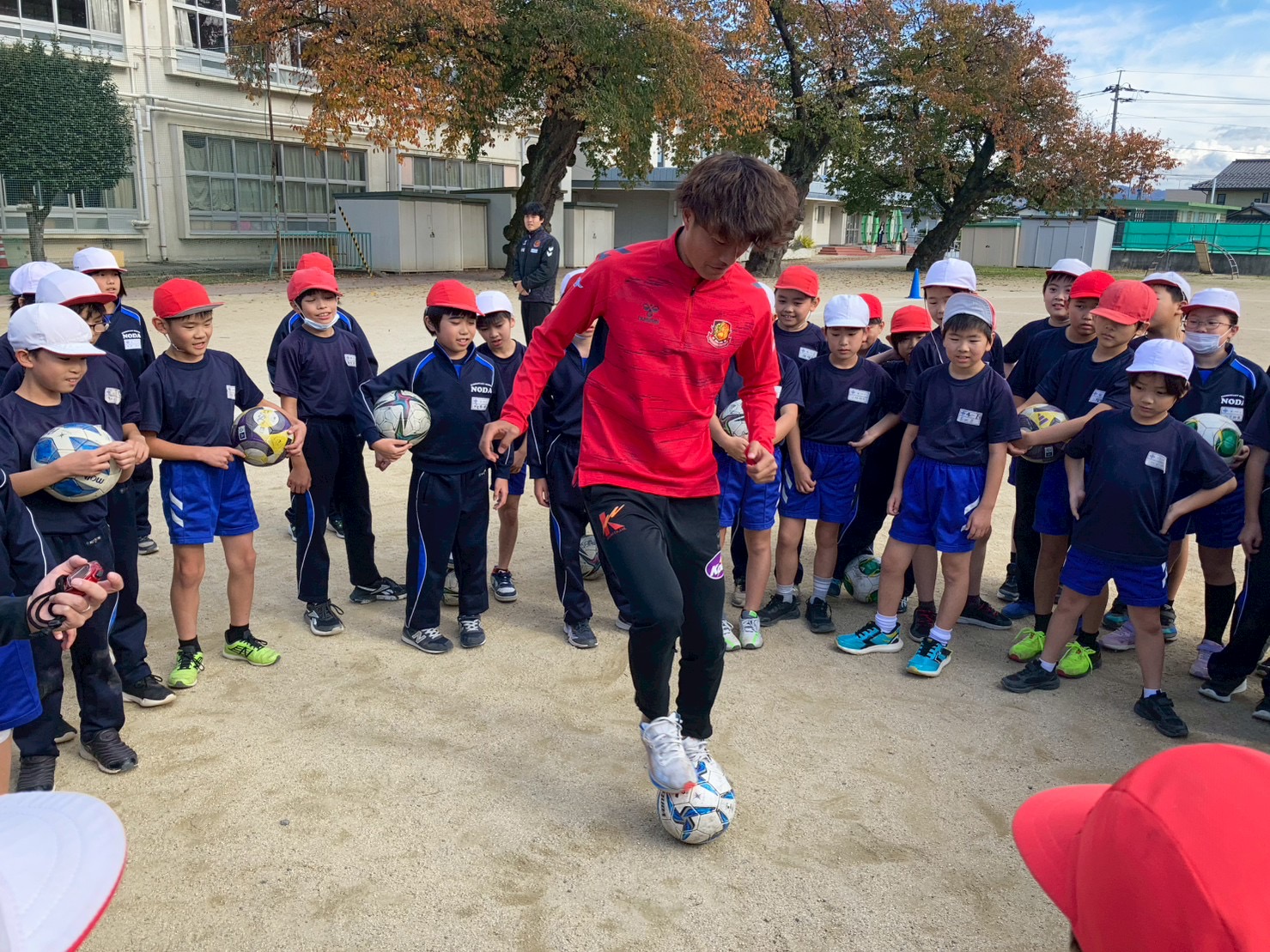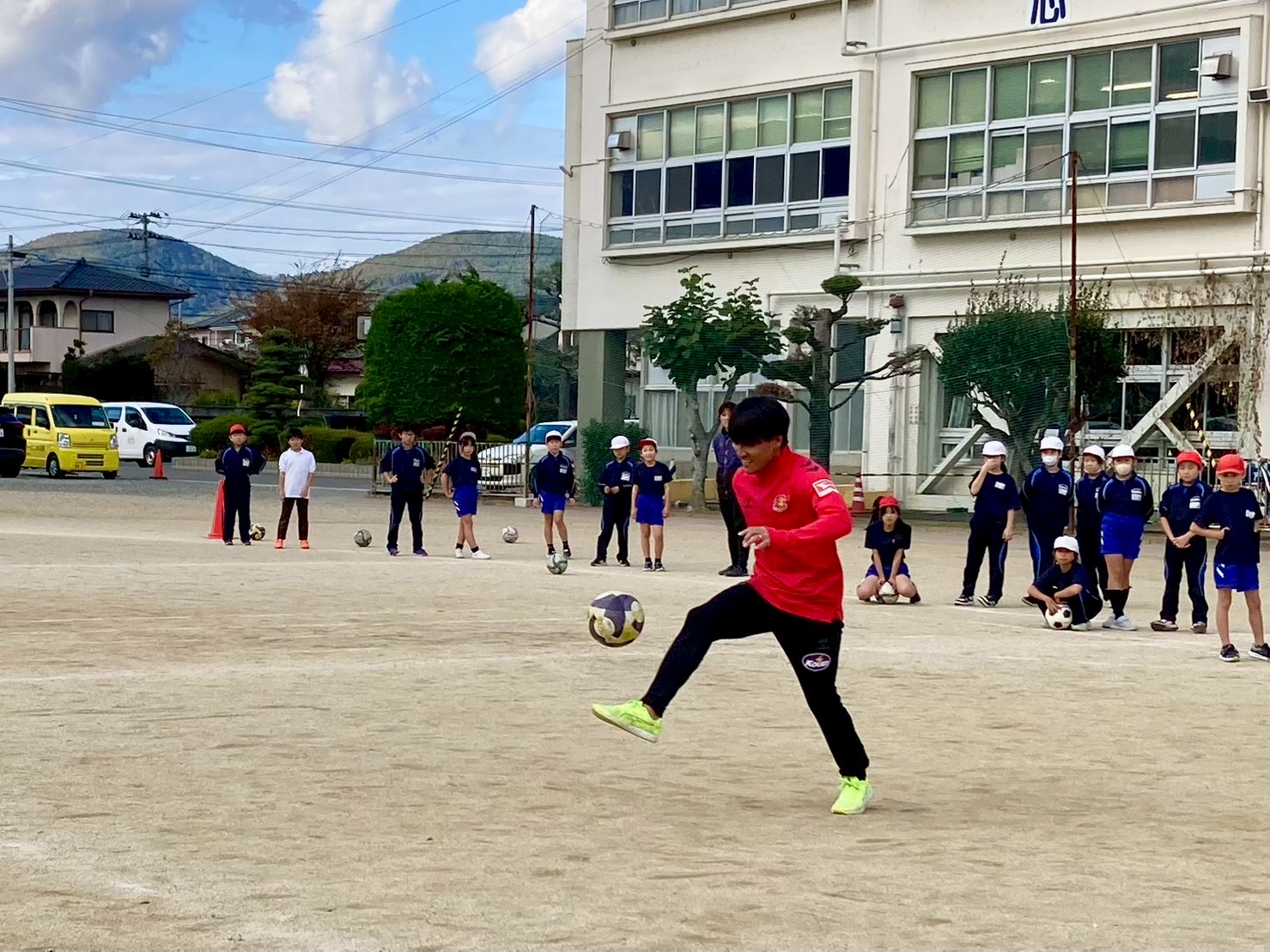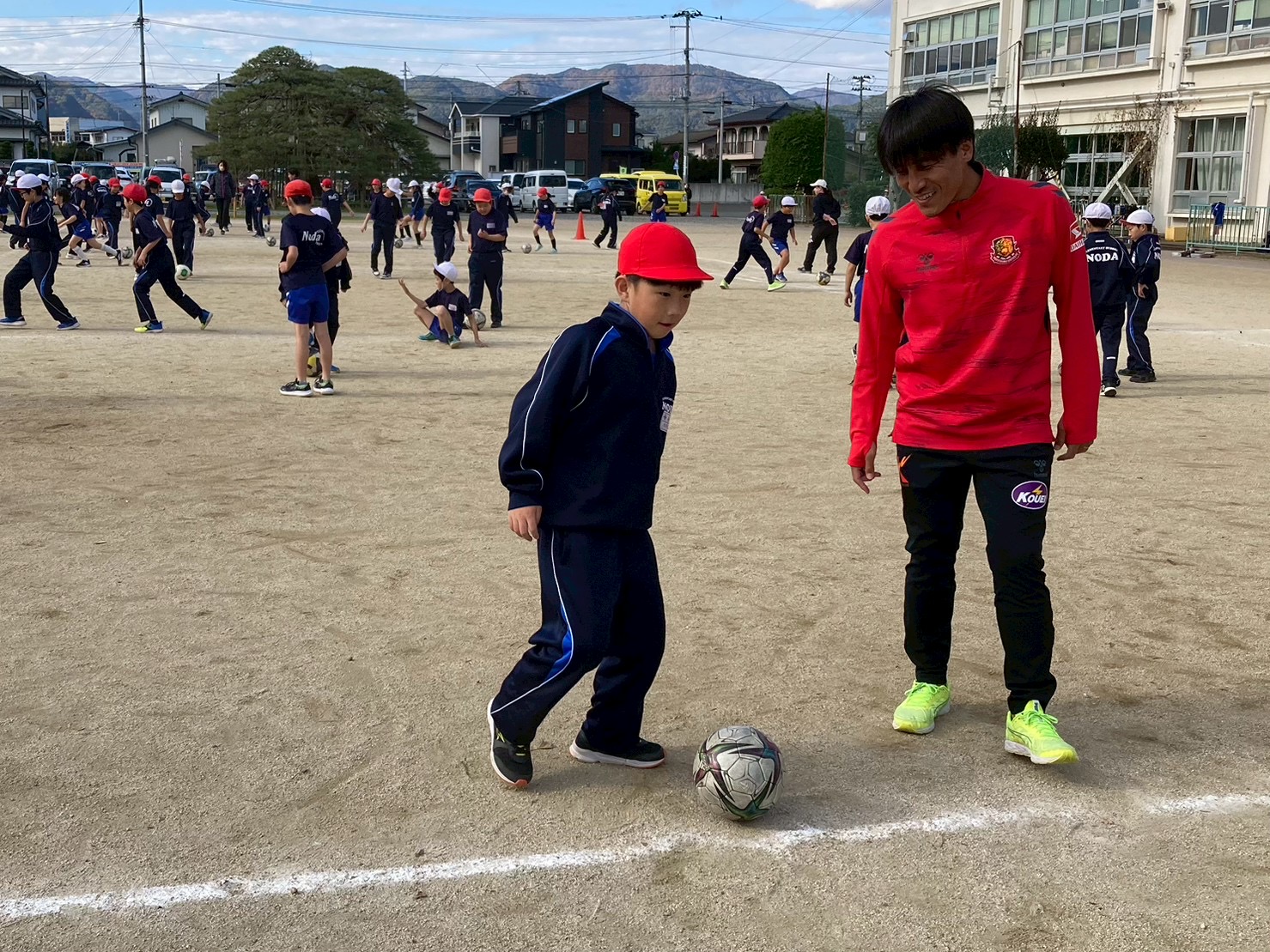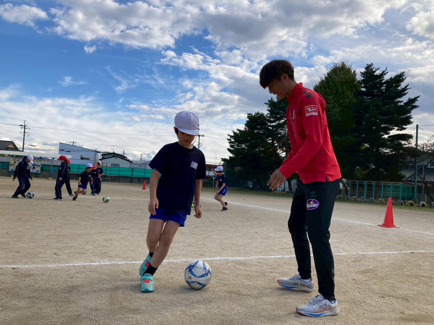 今回は宮崎 智彦 、由井 航太 の2選手が講師を務め、100名の子どもたちにサッカーの授業を実施しました。サッカー教室の時間では、選手2名からのアドバイスを受けながら、上達を実感する様子が伺えました。