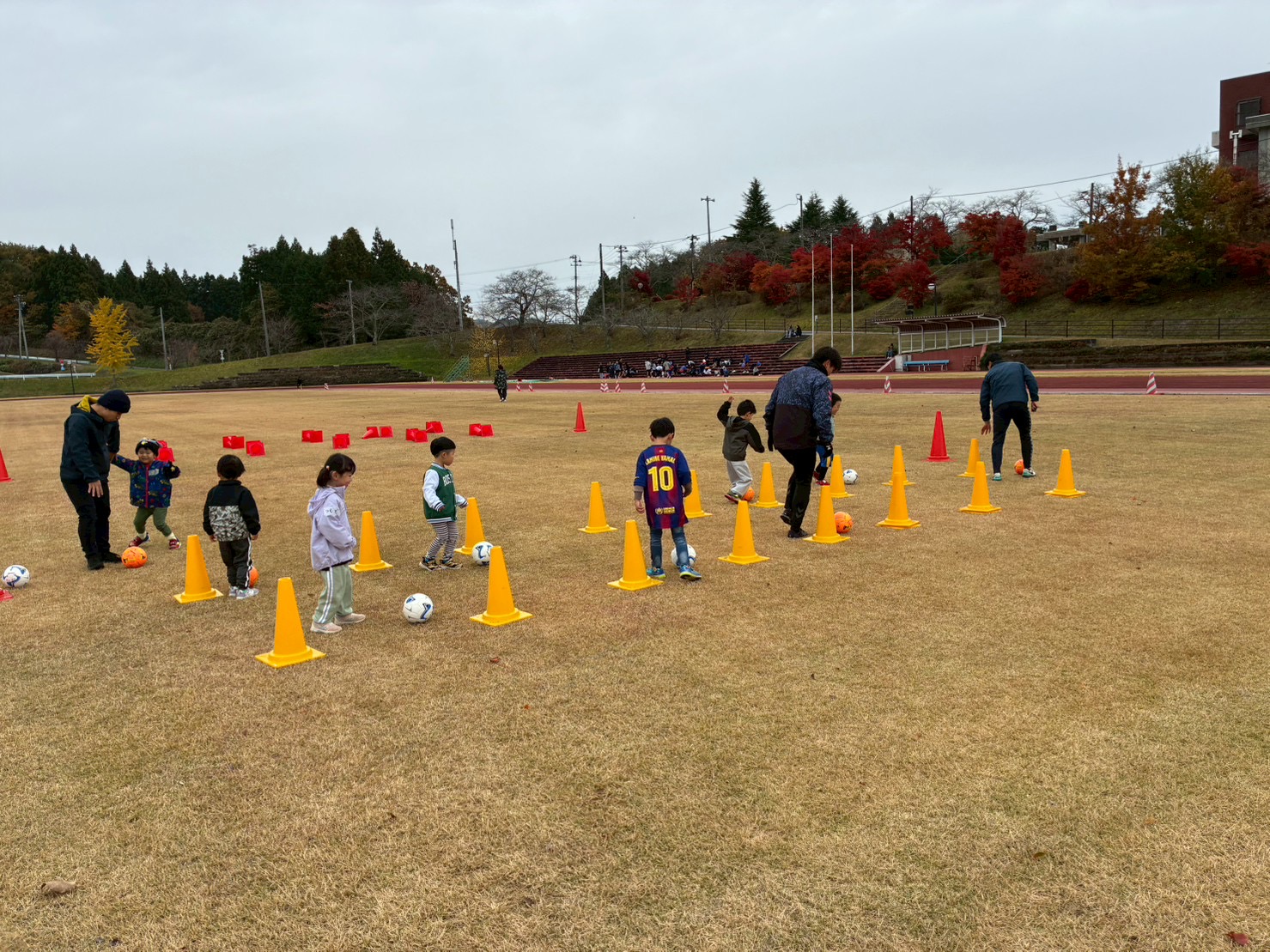 本事業は二本松市教育委員会 生涯学習課より委託され、福島県内のプロスポーツチームと、楽しく身体を動かしながら、カントリーパークとうわと二本松市グリーンフィールド内で体力(スポーツ)向上及び運動をするきっかけ作りに取り組んでいます。また、秋季でスポーツの基本的な動きを練習し、冬季ではより発展的な動きに挑戦し、サッカーの競技人口増加に繋げることを目的としています。