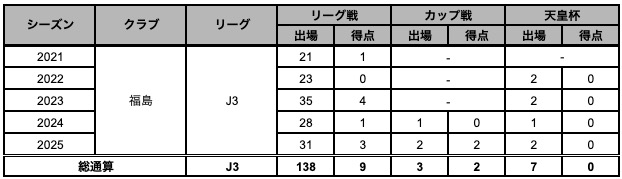 【サッカー歴】高須SC→セレッソ大阪西U-15→セレッソ大阪U-18→産業能率大→福島ユナイテッドFC