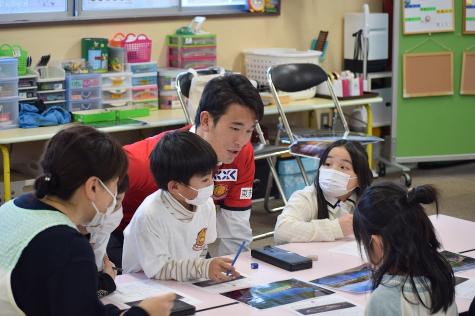 当日は22名(小学生1〜6年生)に参加いただき、田中雄大選手がファシリテーターとなり、グループワークを通じて、新スタジアムに期待すること、スタジアムを中心とした街づくりについて意見を交換しました。 多くの子どもたちが積極的に手を挙げ、大人の想像を超えるような自由な発想が次々と飛び出し、教室中が驚きと笑顔に包まれました。