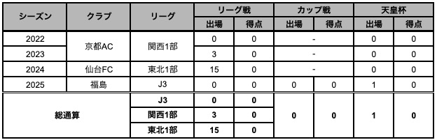 【サッカー歴】野洲 JFC→FC 湖東→膳所⾼→京都⼤→おこしやす京都 AC→みちのく仙台 FC→福島ユナイテッド FC
