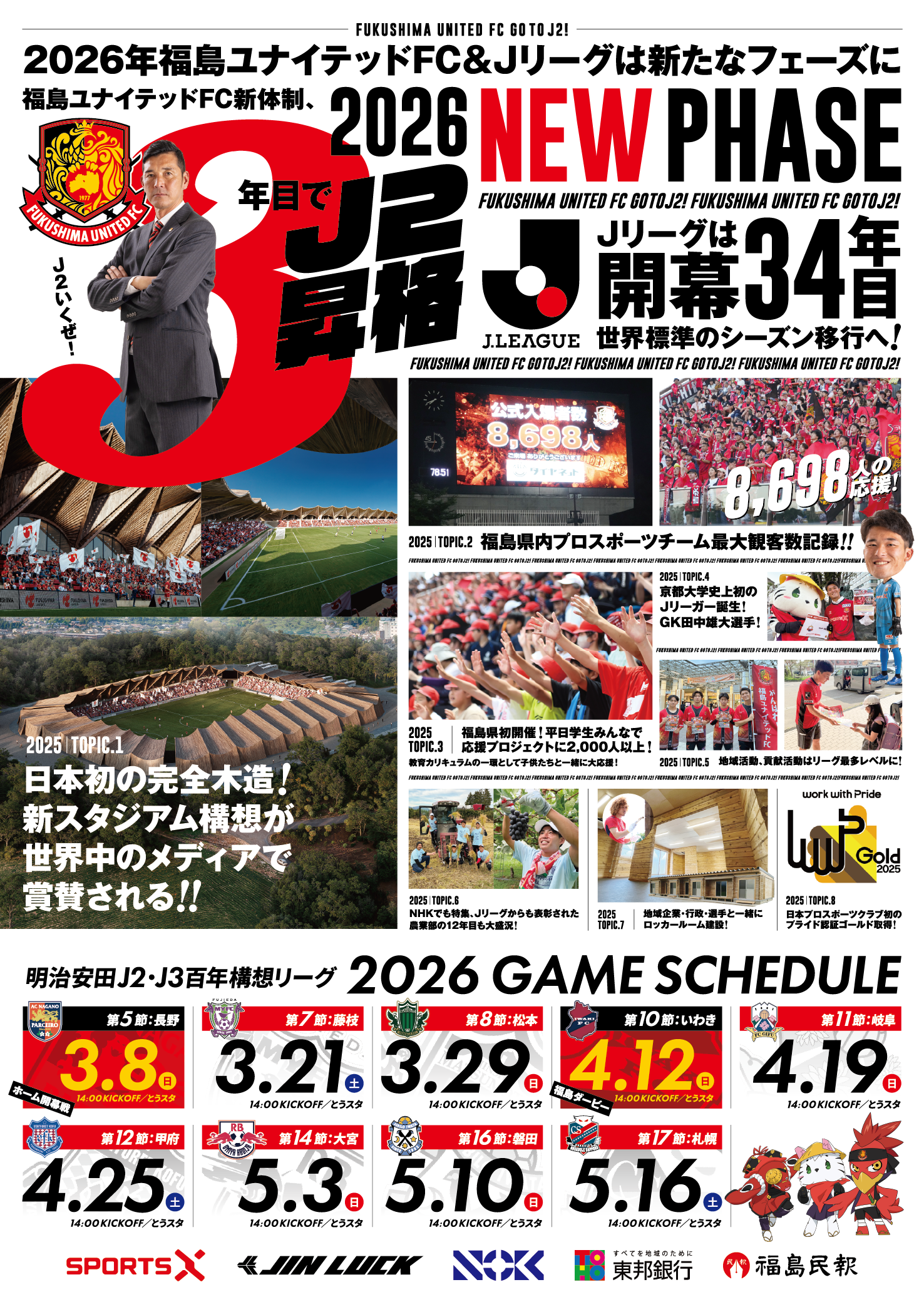 このたび、明治安田J2・J3百年構想リーグの試合日程告知ポスターが完成しましたので、お知らせいたします。