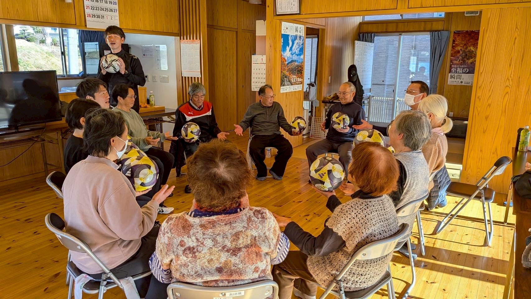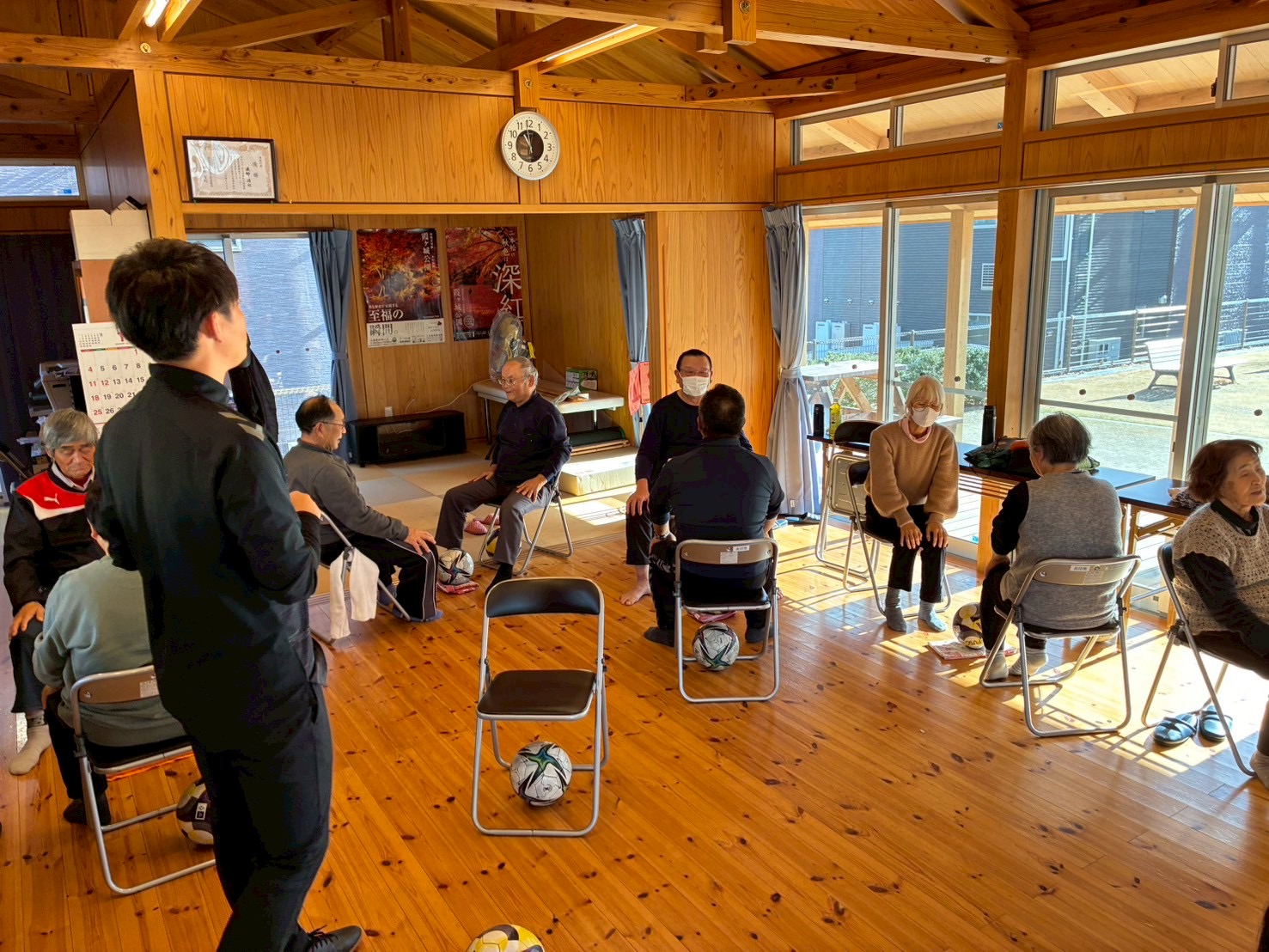 当日は11名の参加者が集まり、和気あいあいで頭と身体の体操をし、最後のPK対決では、楽しんでいる様子が印象的でした。