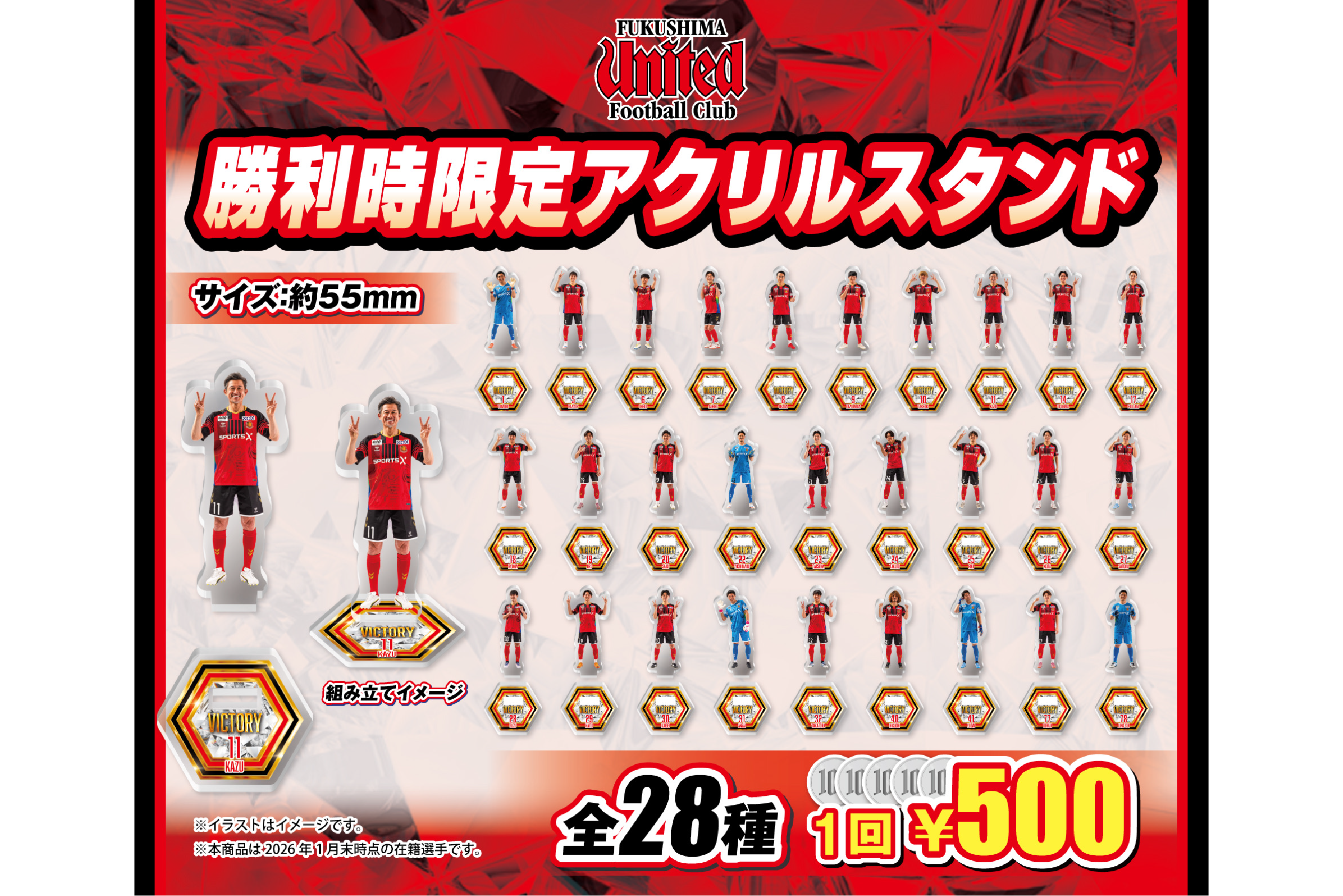 ホーム戦勝利時のみ手に入る「アクリルスタンド」、歓喜の瞬間を特別なグッズで記念に残しましょう。