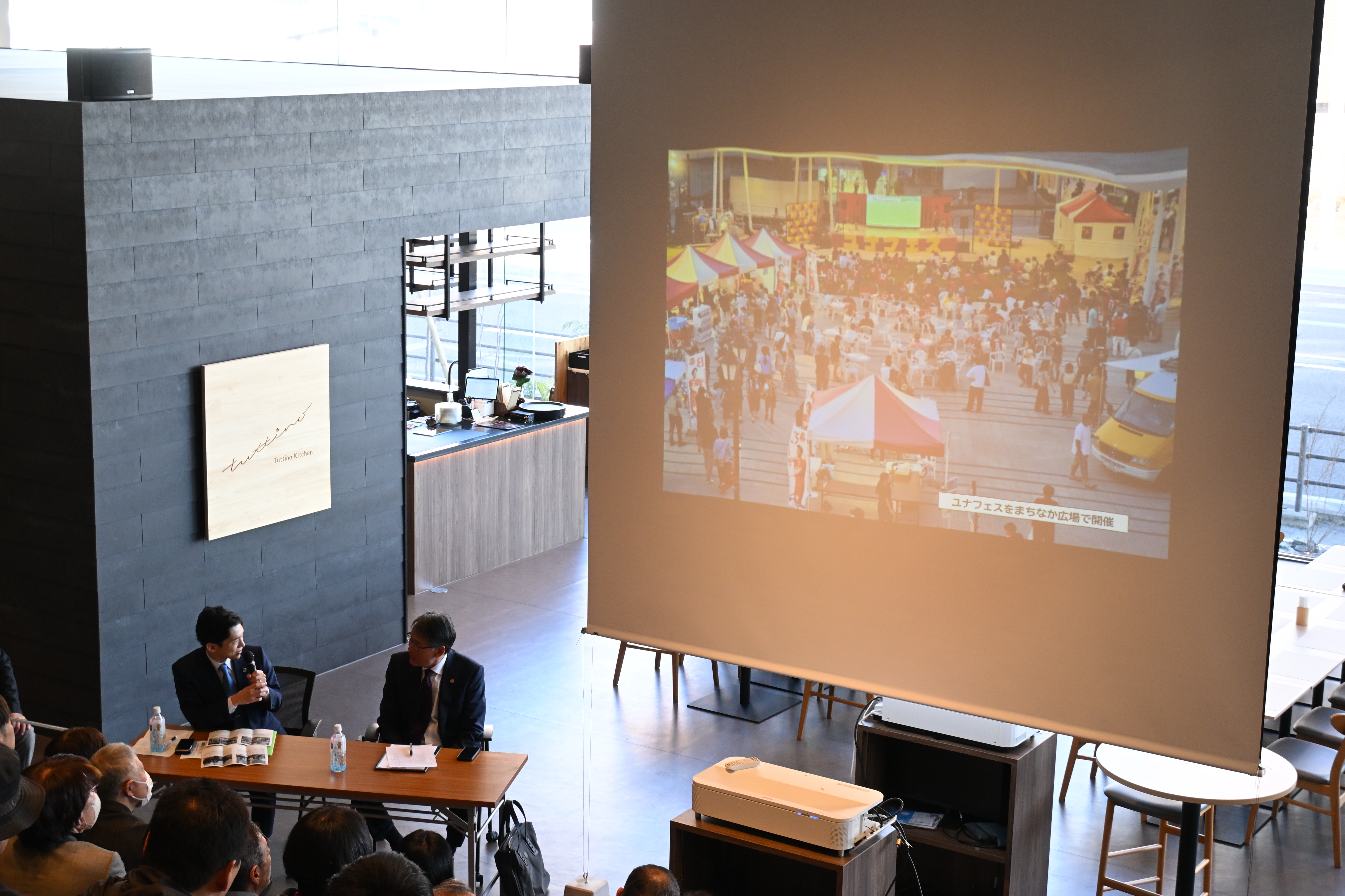 本イベントではスポーツによる地域の活性化について、馬場雄基 福島市長、関塚隆 シニアアドバイザー、浅沼芳征氏、金子與志幸 福島日産自動車株式会社代表取締役社長によるパネルディスカッションを実施しました。