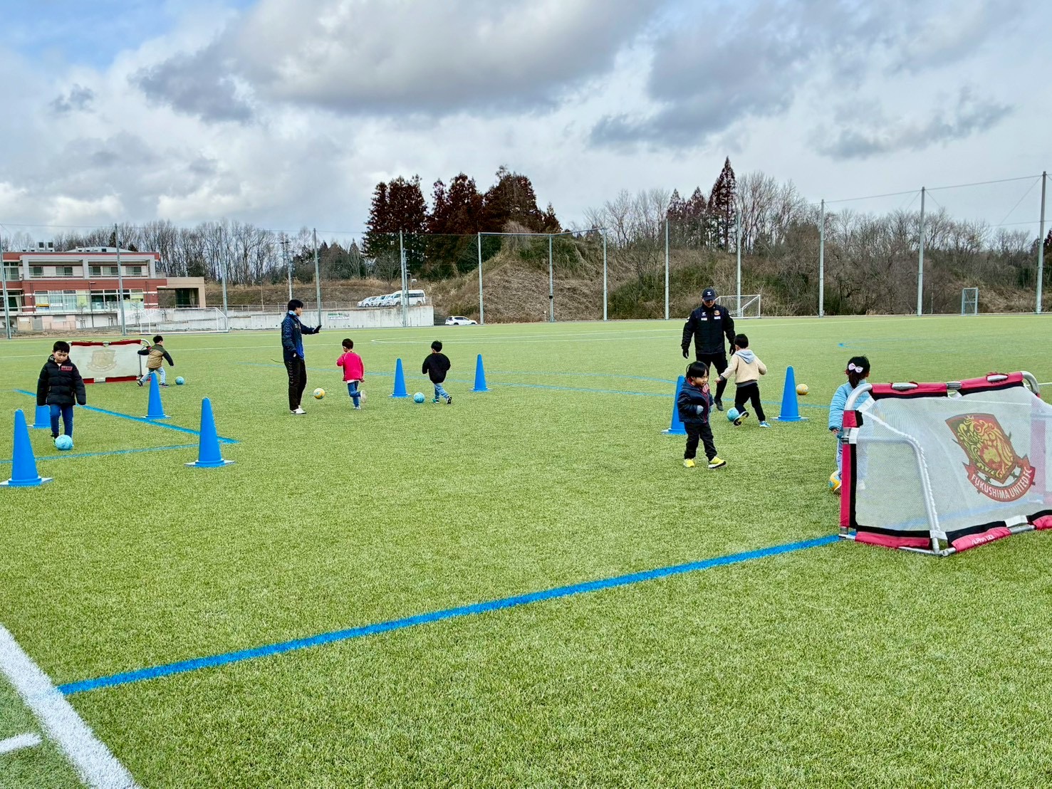 本事業は二本松市教育委員会 生涯学習課より委託され、福島県内のプロスポーツチームと、楽しく身体を動かしながら、カントリーパークとうわと二本松市グリーンフィールド内で体力(スポーツ)向上及び運動をするきっかけ作りに取り組んでいます。また、秋季でスポーツの基本的な動きを練習し、冬季ではより発展的な動きに挑戦し、サッカーの競技人口増加に繋げることを目的としています。