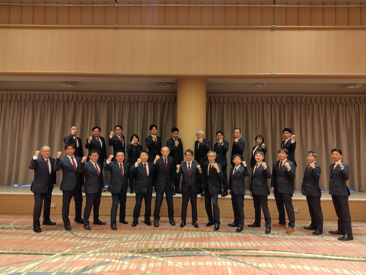同社のさらなる発展を見据え、結束を深める取り組みの一環として、代表取締役 髙橋正樹さまに役員と管理責任者24名分のスーツの新調にあたり、当クラブのオフィシャルスーツサプライヤーを務める株式会社オーダースーツSADAをご採用いただきました。