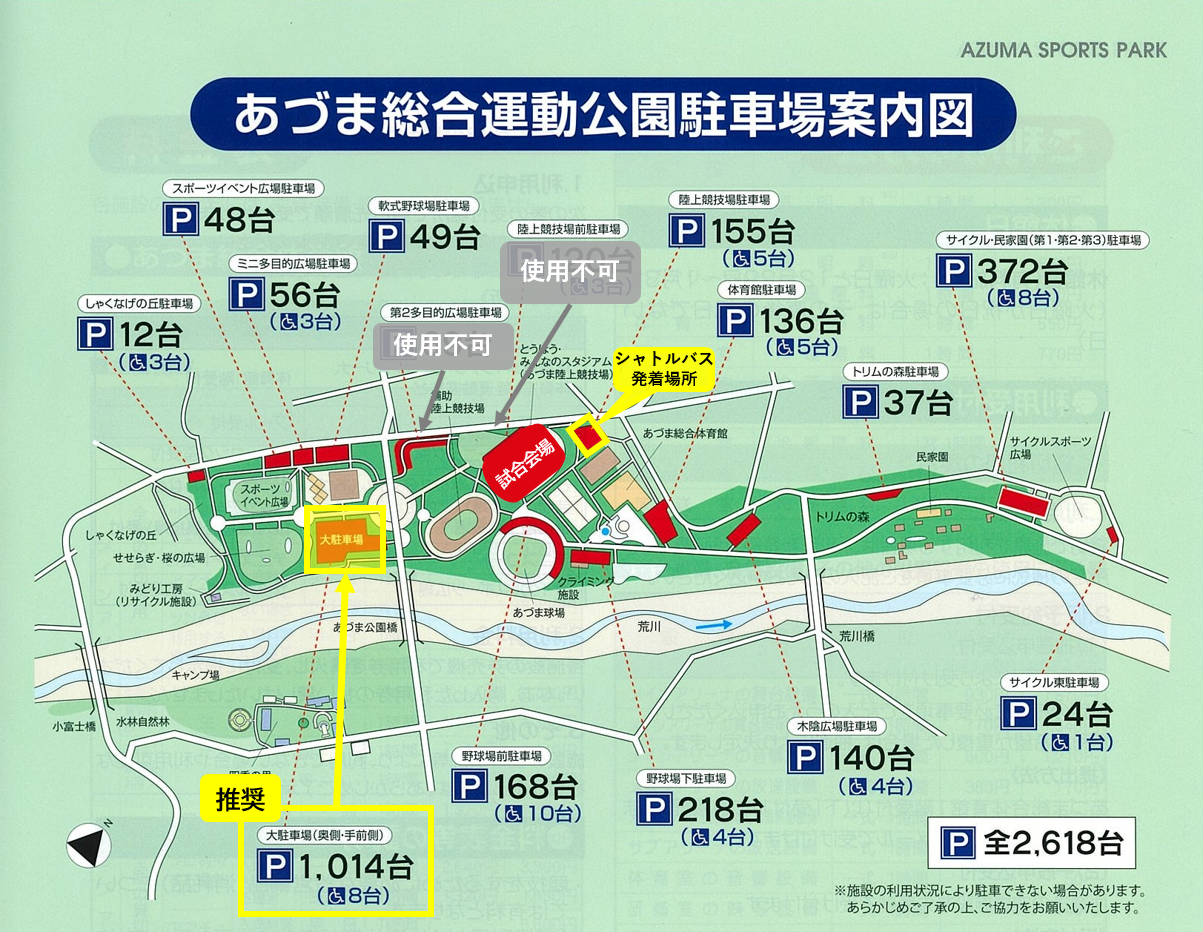 ※第2多目的広場駐車場、陸上競技場前駐車場は、関係者駐車場として使用するため利用できません。