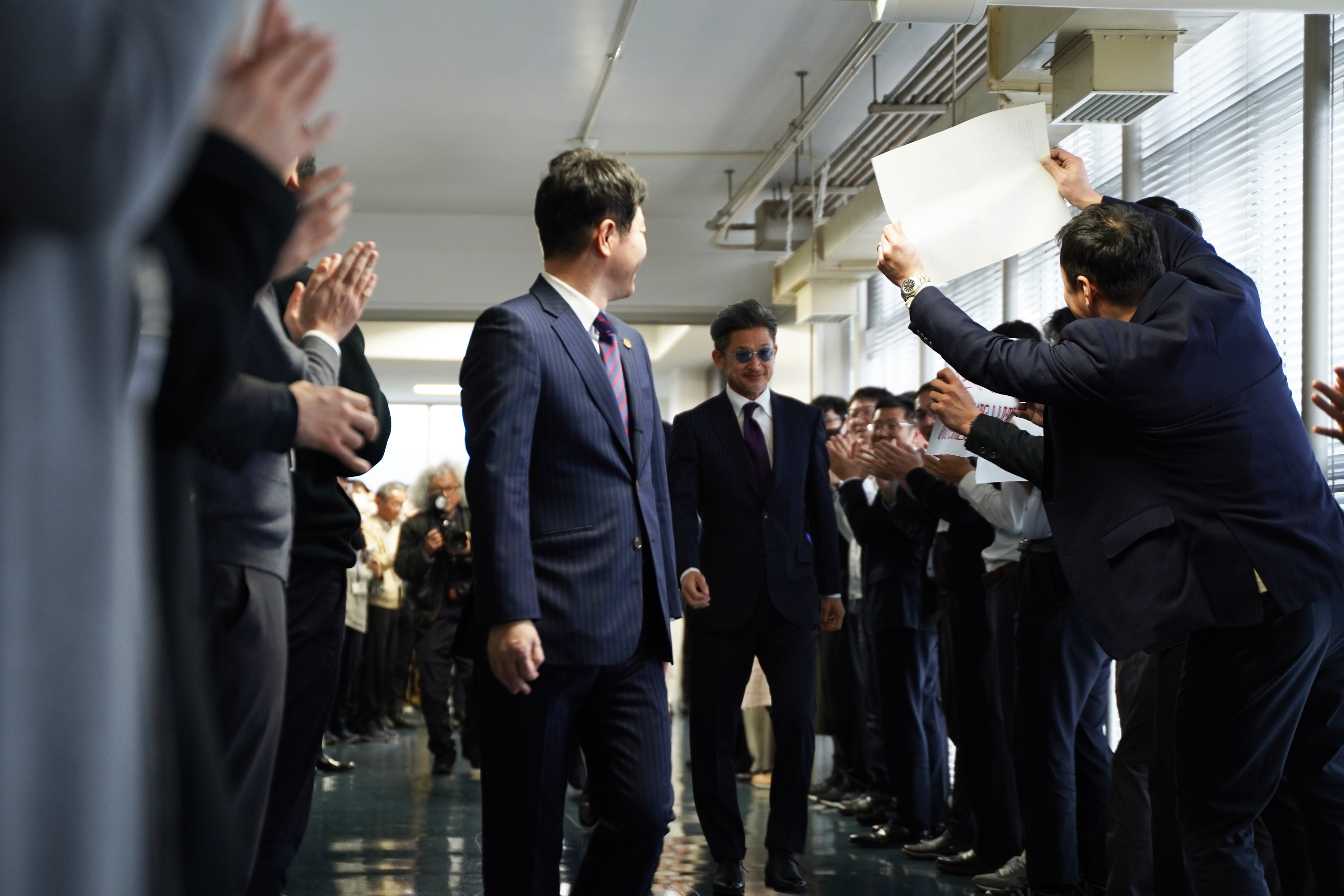 多くの県庁職員の方々に盛大に迎えていただき、温かい声援を頂戴しました。