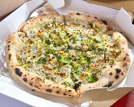 本格石窯で焼くナポリピザ。請戸漁港のしらすのピザが人気。