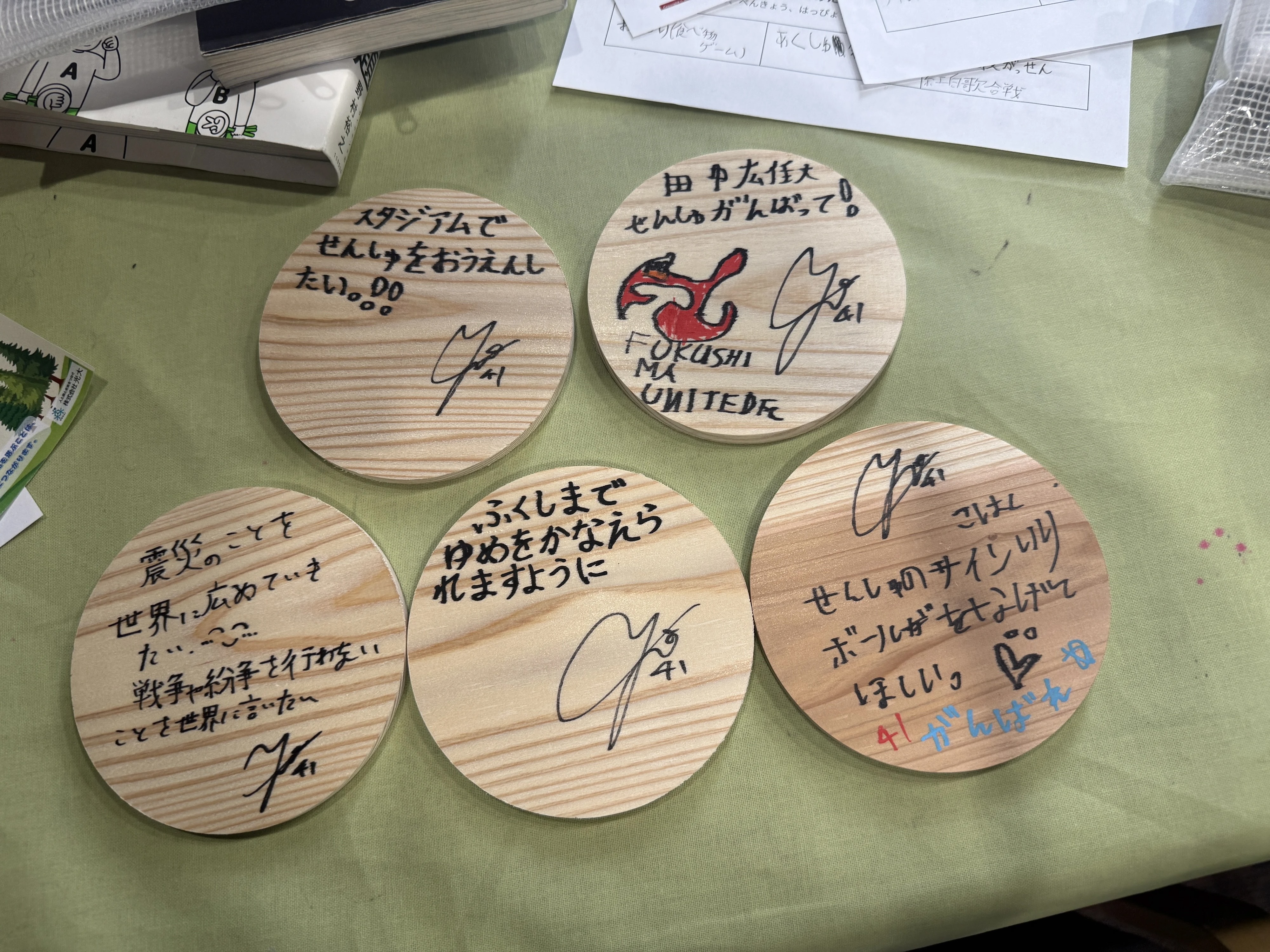 また、FSC認証材を使用した木のプレートは1~6年生37名にプレゼントし、木の豊かな香りやぬくもりに触れてスタジアムへの期待感が高まりました。
