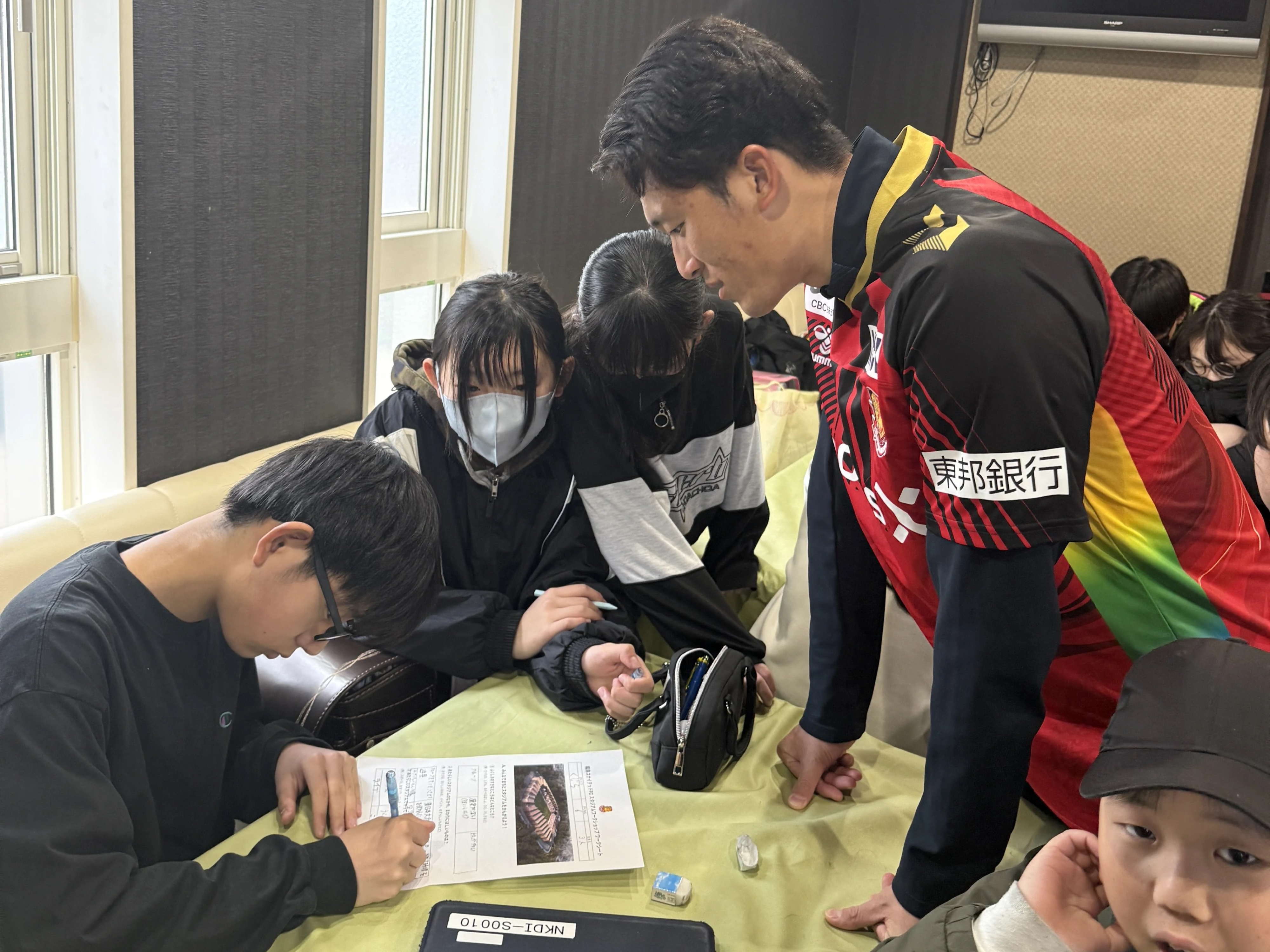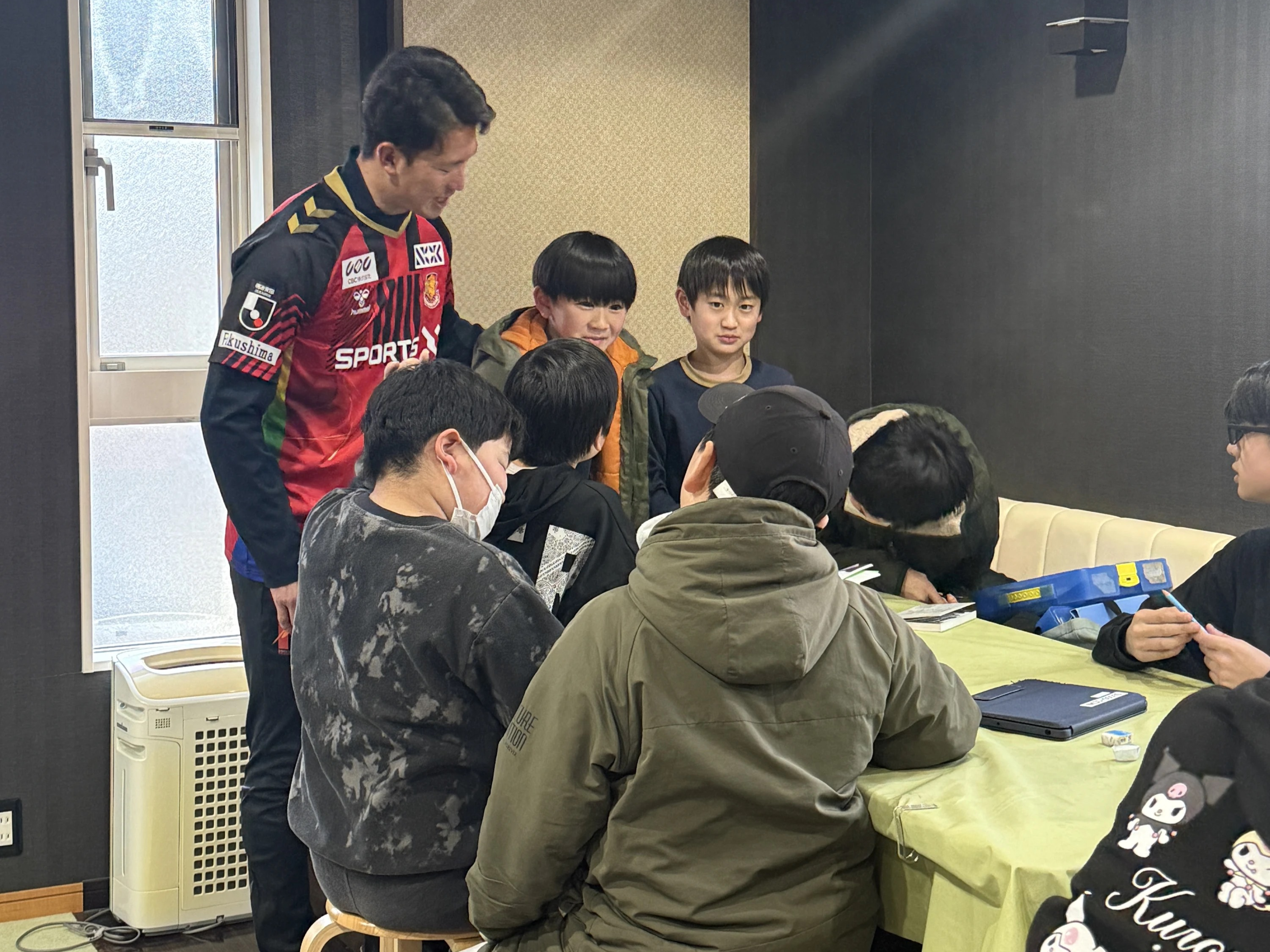 当日は田中雄大選手がファシリテーターとなり、新スタジアムに期待すること、スタジアムを中心とした街づくりについて意見を交換しました。 グループワークには16名(小学生4~6年生)に参加いただき、福島の魅力だけでなく、震災の記憶も未来に継承し広く伝えたいという意見もいただくなど、非常に有意義な時間となりました。