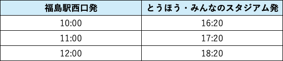 復路:16:20から17:20までの間、20分間隔で運行(最終17:20スタジアム発)