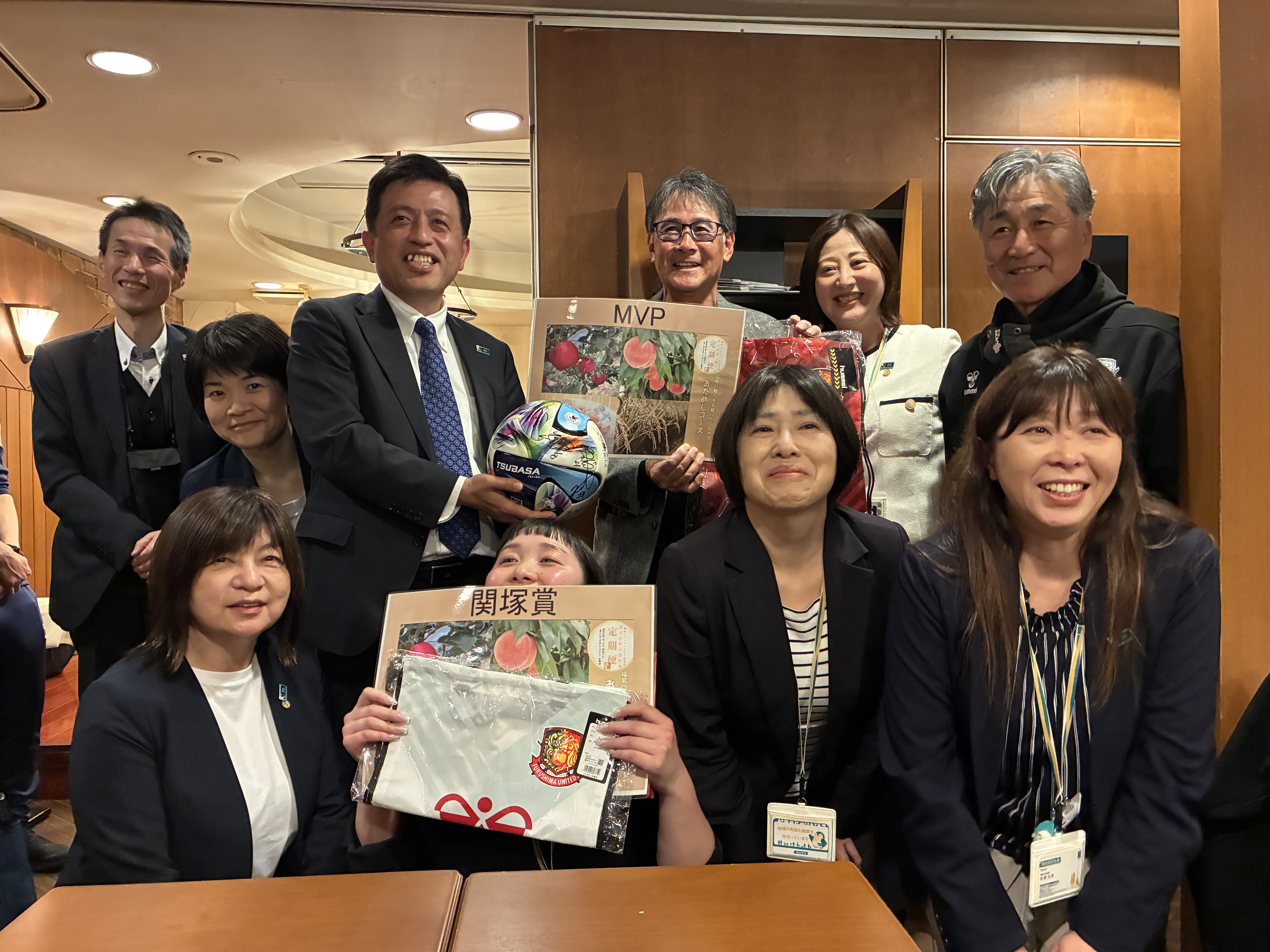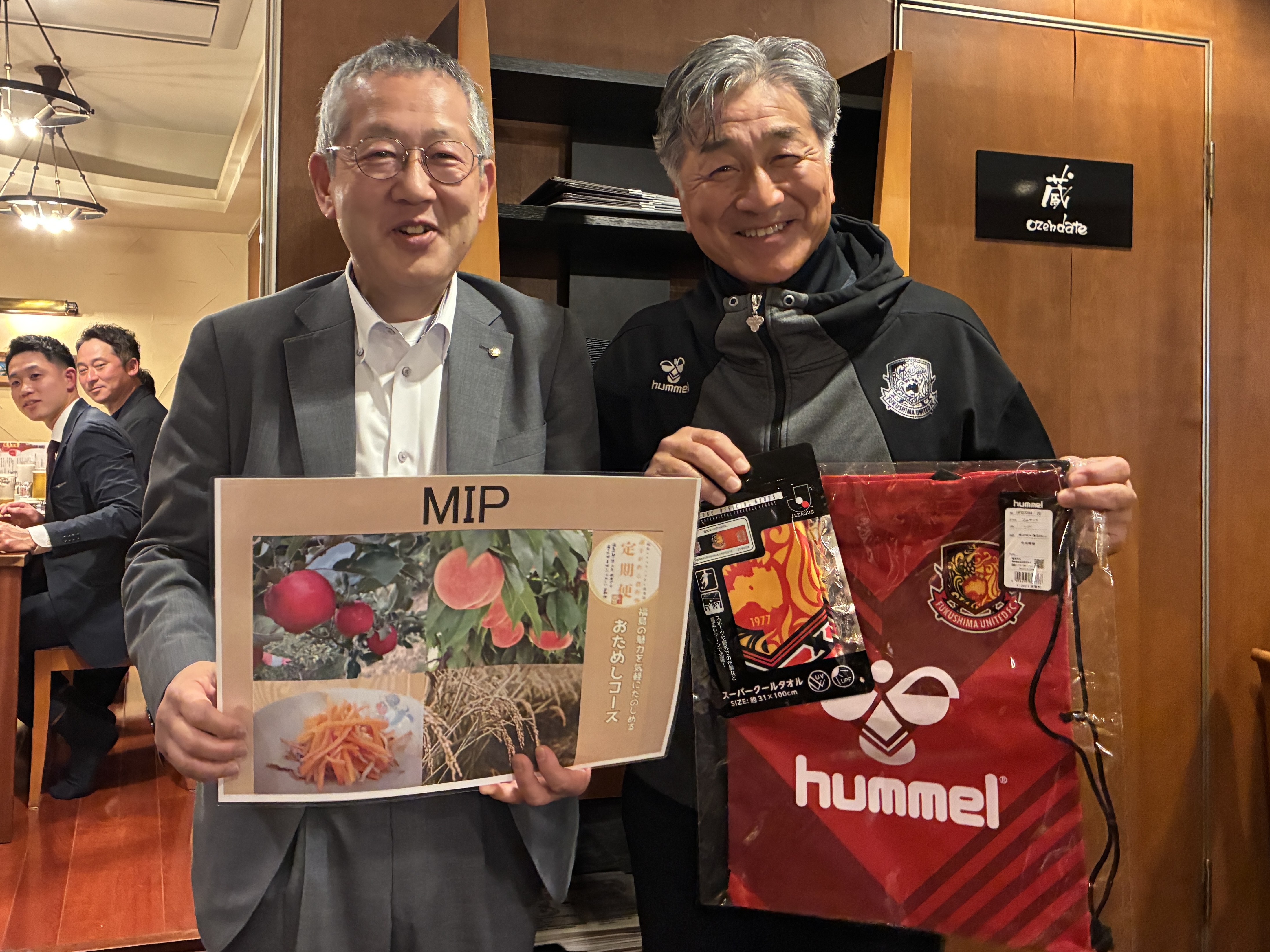 エキシビジョンマッチ後はサポートコーポレーション ブロンズのozendate MASUZOにて懇親会を行いました。ピッチの上で共に汗を流し、サッカーを通じて芽生えたみなさまとの絆をさらに深く結びつける大変有意義な時間となりました。